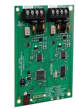The UD-2000 from Potter is a alarm communicator that allows fire control panels to communicate with a monitoring station using up to two telephone lines. It is compatible with various addressable and conventional Potter panels, including the IPA, AFC, and PFC-4064 series. For enhanced reliability, the device automatically monitors phone line voltage and has the ability to "seize" a line to prioritize outgoing emergency signals.