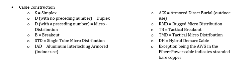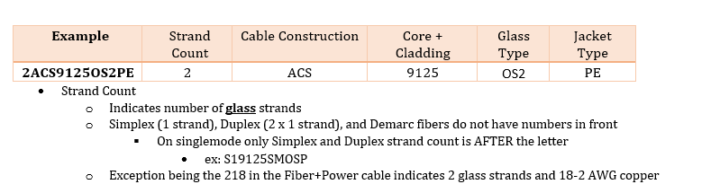 Do you get confused by all the letters and numbers in fiber optic part numbers? Here is a document sent to us from Dylan over at Cleerline that breaks down their Fiber SKU nomenclature to help you with your Fiber ordering needs!