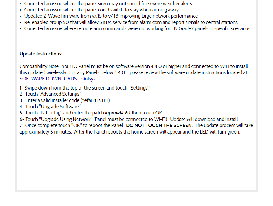 Qolsys IQ Panel 4 / IQ4 Hub - 4.6.1 Software Update