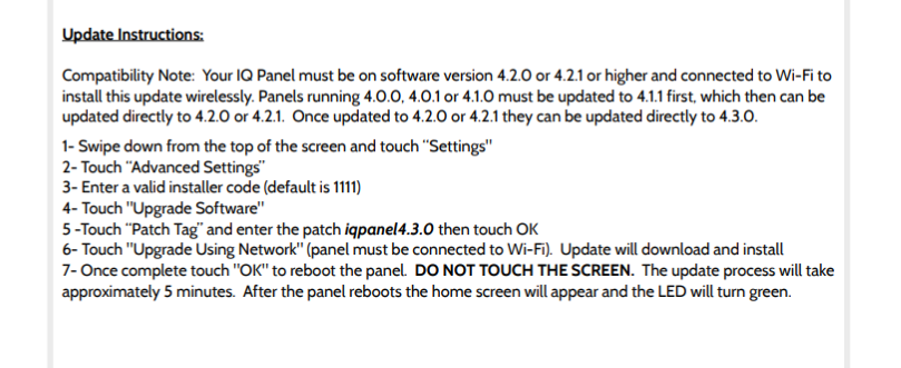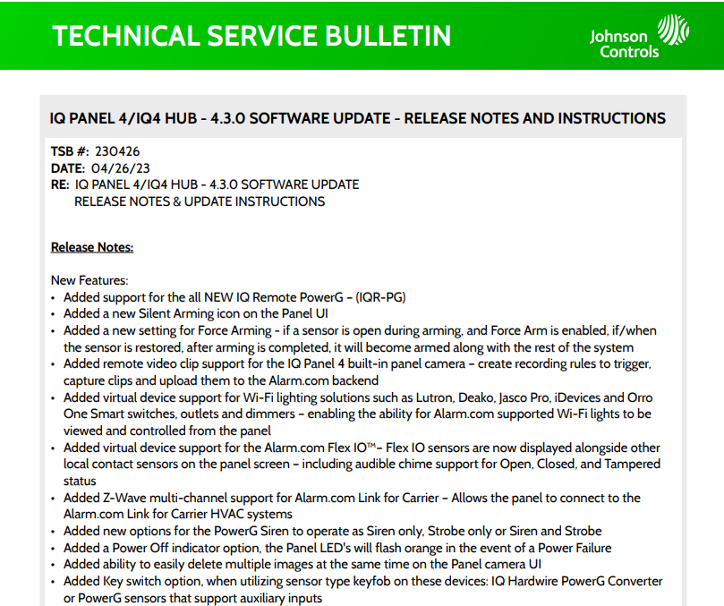 Qolsys IQ Panel 4 / IQ4 Hub - 4.3.0 Software Update - Release Notes and Instrtuctions